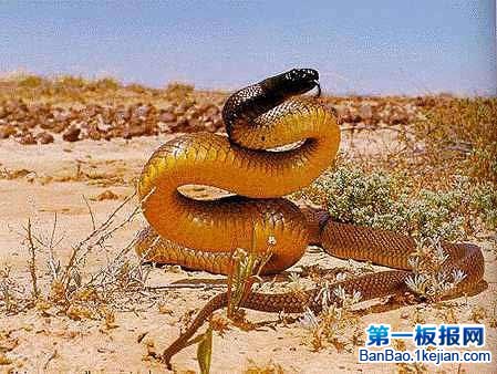分布于澳洲北部、新几内亚。栖息于树林、林地,以小哺乳动物为食,卵生,体长约两公尺。分布于沙漠及干枯河床等地。神经毒素,心脏毒素,一次排出的毒液足够杀死50万只老鼠,几乎具有核武器的杀伤力,与钩鼻海蛇 (Enhydrina schistosa) 齐名堪称世上最毒的蛇,毒性还要比 眼镜王蛇强100 倍。但是,到目前为止还没记录有人死于这种蛇的咬伤,因为此蛇分布于人迹罕至的荒漠,另外澳洲政府及人民也早已对这种著名的毒蛇有所防范。