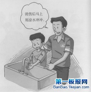1.烫伤后,要迅速除去热源,离开现场,在第一时间用凉水冲洗伤口10分钟以上。如烫伤较轻无伤口,可用獾油、烫伤膏或牙膏涂在患处。