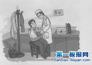 髋部及大腿骨折:夹板放在上肢外伤,上自腋下,下至踝上,用绷带缠绕固定,也可用两侧并拢中间放衬垫,用布带捆扎固定。