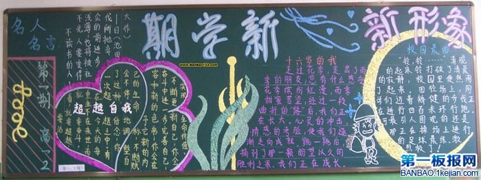 这幅新学期黑板报主旨突出,花边漂亮,文字书写规范,设计富有创意,值得欣赏!