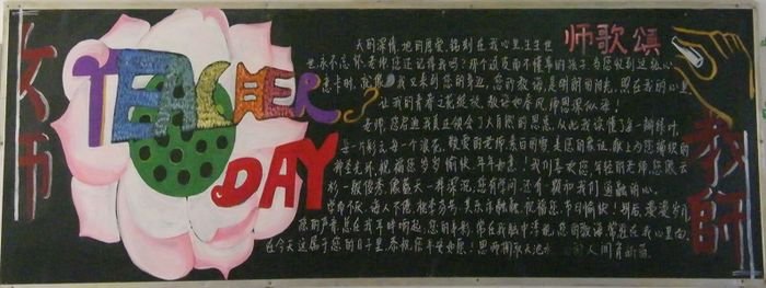 这幅教师节黑板报主旨突出,特别是版头设计非常出彩,插图生动,文字书写规范,设计富有创意,值得欣赏!