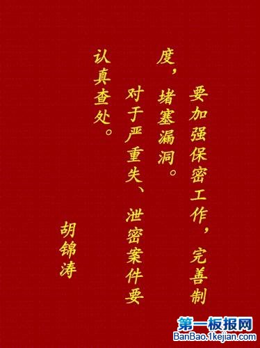 这是胡锦涛同志关于保密工作的重要指示:要加强保密工作,完善制度,堵塞漏洞。保密委和有关部门都要从国家安全的政治高度抓好这件事。