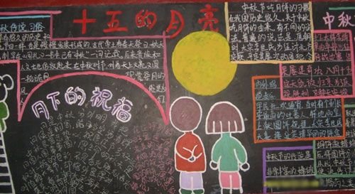 这幅中秋节黑板报排版设计美观,绘画活泼生动,特别是内容选取丰富,书写工整,值得学习。