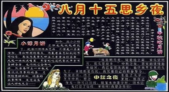 这幅中秋节黑板报排版设计美观,色彩搭配靓丽,特别是内容选取丰富,书写工整,值得学习。