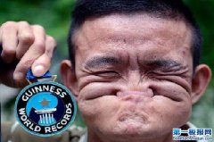 2012年06月05日,四川省成都市,“烂脸王”汤术全表演嘴巴吃鼻子,并展示今年3月在意大利参加吉尼斯世界纪录表演秀获得的奖牌,这张脸是名副其实的 世界上最烂的脸 。...