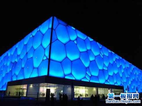 奥运历史上第一次使用膜结构建造的游泳馆——水立方。它的外覆薄膜结构,是国际上建筑面积最大、功能要求最复杂的膜结构系统,这种充气型膜结构造型已经为它赢得了多个奖项。“水立方”不仅创下了世界上首个基于“气泡理论”建造的多面体钢架结构建筑,而且,它1437块气泡枕也创造了建筑史上的纪录。“水立方”拥有标准坐席17000个,奥运会期间将承担游泳、跳水、花样游泳等比赛。