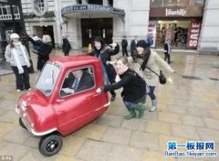 在英国伦敦“Ripley’s Believe It Or Not ”博物馆展出了世界上最小的轿车——Peel 50。这辆三轮迷你车长1.34米,宽0.99米,仅重59公斤,只有一个车门和一个车灯,当然它小到只能坐...
