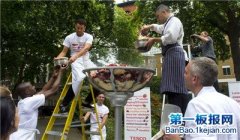 2013年7月25日,英国伦敦,英国的乐购超市打造了 世界上最大的英式甜品伊顿麦斯(Eton mess) 重达167公斤,由50公斤新鲜草莓、蓝莓和50公斤奶油等制成,可供2000名顾客享用。...