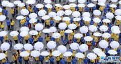 2012年5月18日,高中毕业生们在波黑首都萨拉热窝的一处广场上撑着伞跳舞。当天,共有来自10个国家的70个地区超过32000名高中毕业生一起跳起了同步四对舞,试图打破 世界上最多的人一...