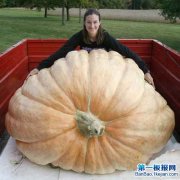 2009年10月5日,美国俄亥俄州Jackson Township居民克里斯提·哈普(Christy Harp)在展示他种植的重达1725磅(约合782公斤)的巨大南瓜。这也打破了原有的世界记录。...