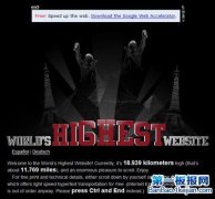 有个家伙为了实验CSS,制作了一个据称是 世界上最长的网页 ,并申报吉尔斯世界纪录,可惜未获通过。 worlds-highest-website.com 这个网页全部长度,应该说是高度,大约是18.939公里...
