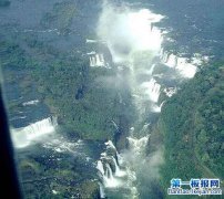 伊瓜苏瀑布位于阿根廷和巴西边界上伊瓜苏河与巴拉那河汇合点上游23公里处。瀑布为马蹄形,高82米,宽4千米,是北美洲尼亚加拉瀑布宽度的4倍,比非洲的维多利亚瀑布还要宽一些。悬崖边...