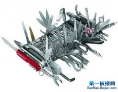威戈(Wenger)公司生产的这种“特大号”的瑞士军刀被吉尼斯世界纪录收录为“世界上功能最多的折叠刀”,这把军刀共包含87件工具,具备141种功能。...