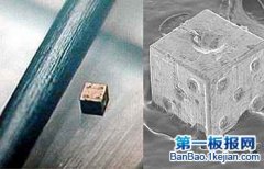 左侧那条棒子是直径为0.5mm的铅笔芯,知道它有多小了吧。它长宽高均为0.3mm,重0.00016克。它是由一家日本公司利用最新的显微机械加工技术花了9个小时制作出来的。...