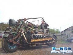 北京时间2007年12月6日消息,据英国媒体报道,德国一名男子使用坦克发动机制造了一辆巨型摩托车,现在已经被确认为世界上最重的摩托车。 制造这辆摩托车的是39岁的迪洛·涅伯尔将它戏...