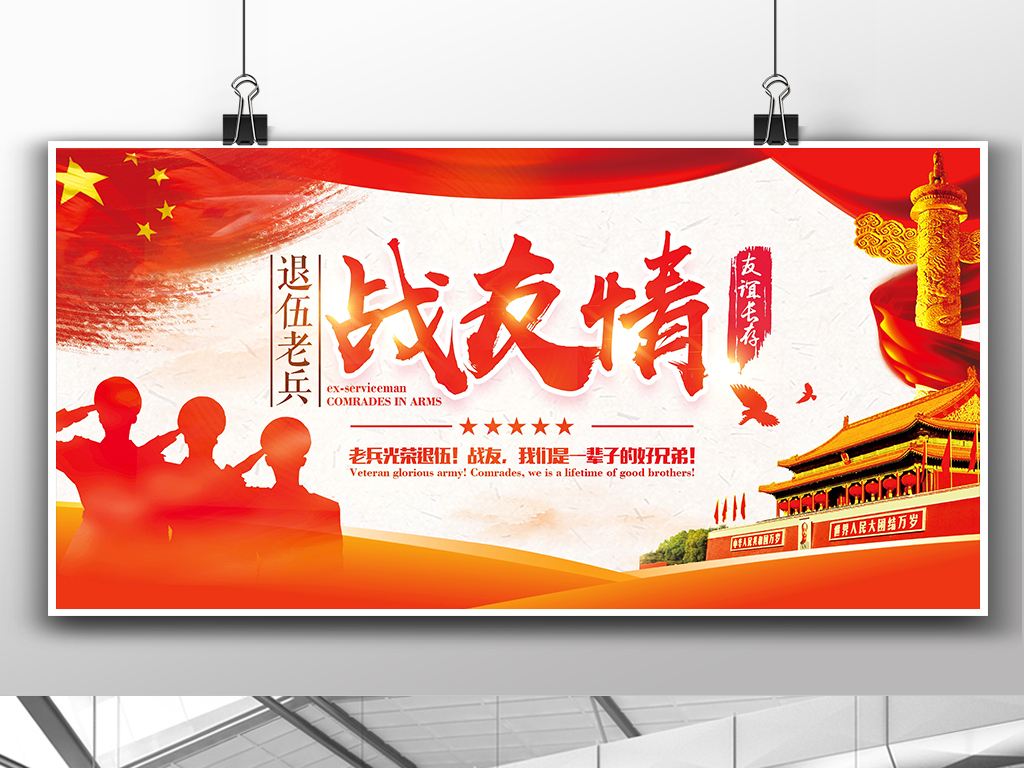 中国风战友情深欢送退伍老兵党建展板老兵欢送会背景模板