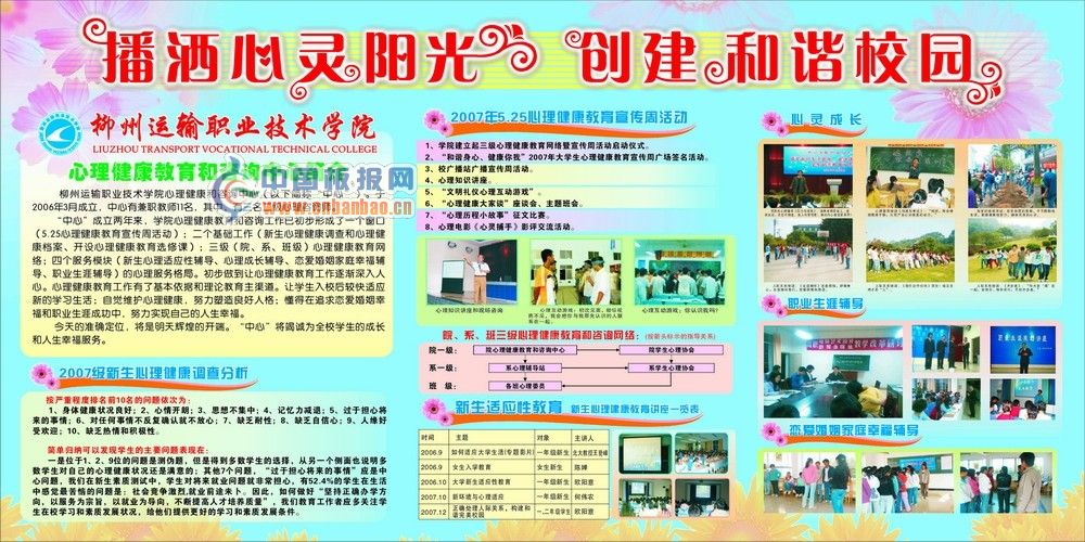 柳州运输职业技术学院 心理健抗教育和咨询中心简介 心声心理健康调查分析 新生适应性教育 职业生涯辅导 恋爱婚姻家庭幸福辅导 心灵成长 5.25心理健康教育宣传周活动