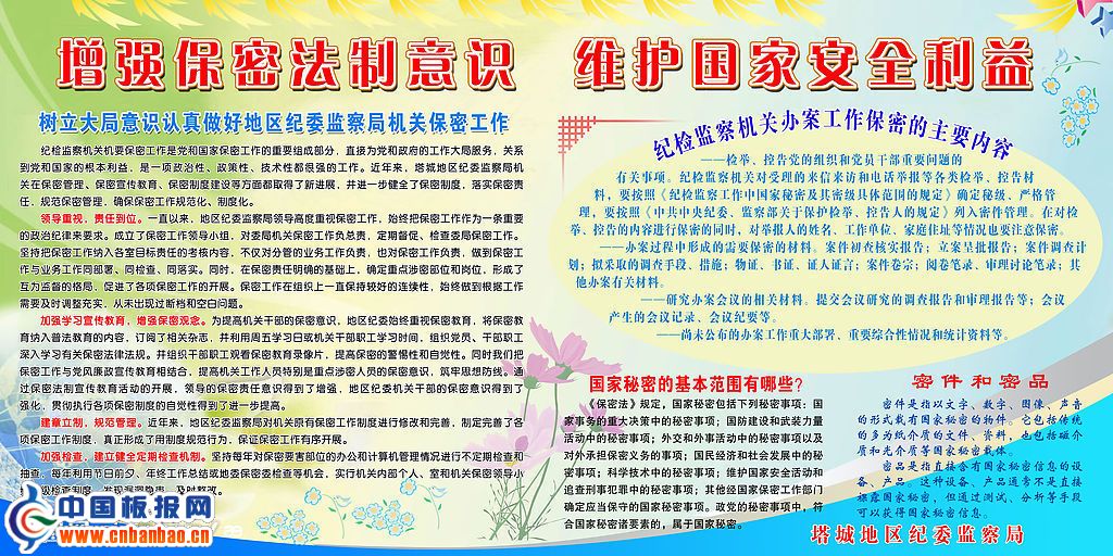 纪委监察局保密板报:增强保密法制意识 维护国家安全 利益