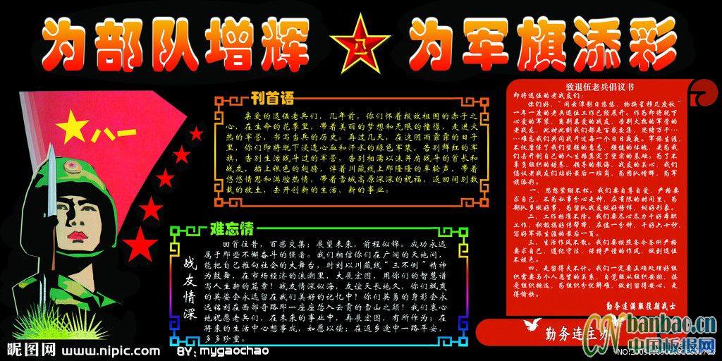 部队展板 部队 军旗 老兵 退伍 黑板报 l老兵复退 展板模板 广告设计模板 源文件 100DPI PSD