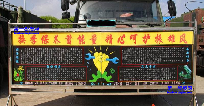 换机保养蓄能量,精心呵护振雄风,关于军队装备保养的黑板报