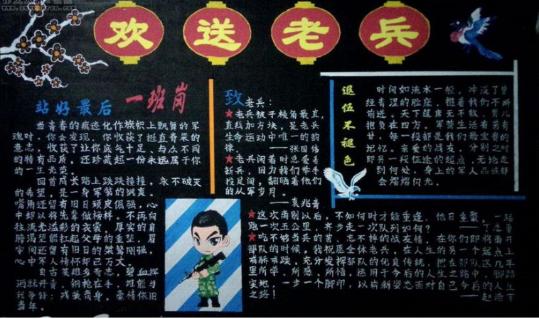 第一板报网 部队黑板报 欢送老兵站好最后一班岗。