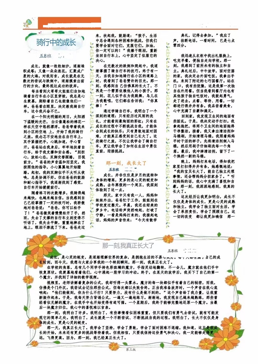 小学生电子板报原创作文内容《骑行中的成长》、《那一刻我长大了》!
