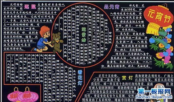 元宵节习俗-看花灯,品元宵黑板报