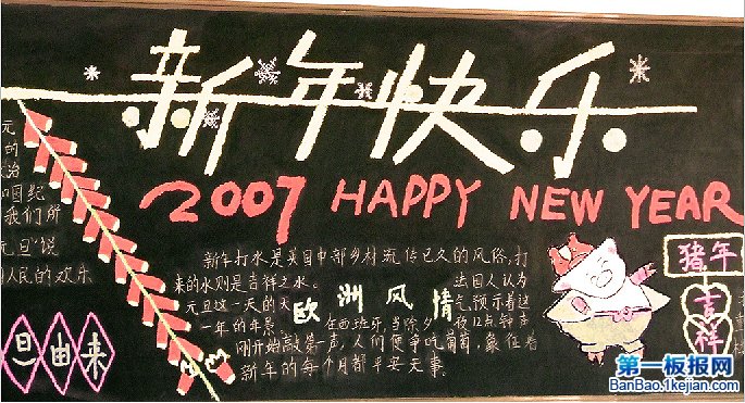 关于元旦的黑板报——新年快乐