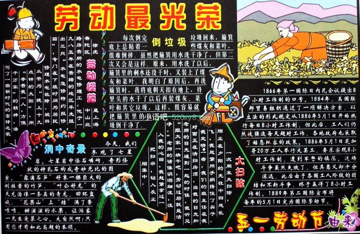 国际劳动节又称“五一国际劳动节”、“国际示威游行日”(International Labor Day或者May Day),是世界上大多数国家的劳动节。定在每年的五月一日。它是全世界劳动人民共同拥有的节日。1889年7月,由恩格斯领导的第二国际在巴黎举行代表大会。会议通过决议,规定1890年5月1日国际劳动者举行游行,并决定把5月1日这一天定为国际劳动节。中央人民政府政务院于1949年12月作出决定,将5月1日确定为劳动节,全国放假一天,五一劳动节黑板报图片集锦