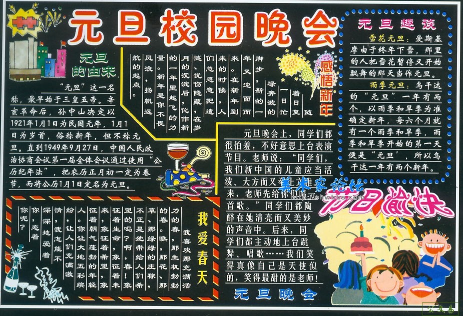元月一日庆祝元旦节专题黑板报