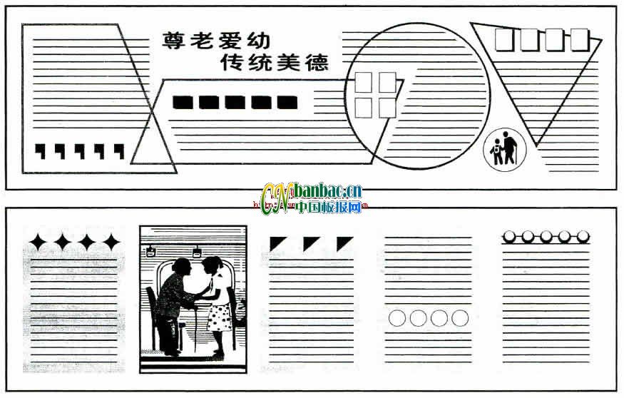 重阳节黑板报版式范例:尊老爱幼 传统美德
