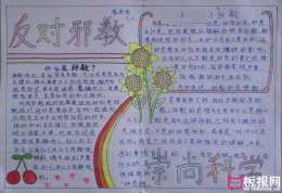反邪教手抄报图片,反对邪教邪教都宣称,其教主是掌握特殊法术、具有超自然能力的神人,可以用他的神通和法力治病、度人。成员们把教主当成神,顶礼膜拜,绝对服从。而教主则胡作非为,独断专行,组织专制结构,建立邪教王国,神化和崇拜教主是邪教的突出特征,与宗教信仰神有着根本区别。下面板报网小编为您带来反邪教手抄报图片,什么是邪教?希望你们喜欢!