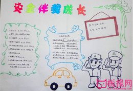 这幅保护环境手抄报以安全伴我行为主题,色彩搭配非常显眼,内容选取得当,值得学习!道路交通安全常识手抄报