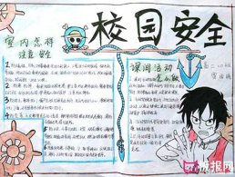 先写上防拐骗几个字,再在字的左右两边画上两个矩形边框,接着在下面画上一个小男孩和一个贼眉鼠眼的人,再在最外面画上波浪边框,矩形边框里的空白处画上横线,最后再涂上颜色,这样,防拐骗手抄报就完成了。