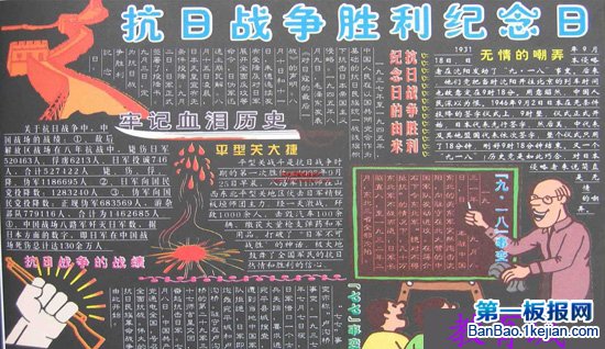 9月3日抗战胜利纪念日黑板报图片与内容:牢记血泪历史
