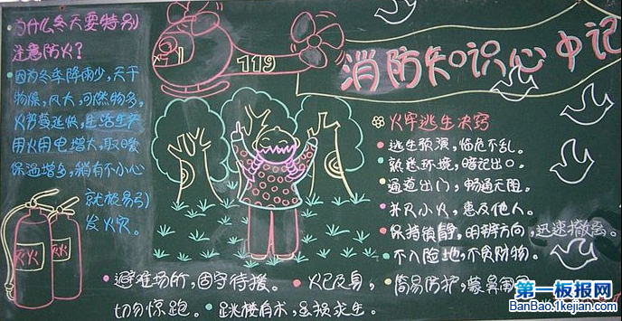 该黑板报很直接的讲解了关于消防需要注意的问题,比如“为什么冬天要特别注意防火”“消防知识”“火灾逃生诀窍”都很好的体现出来。
