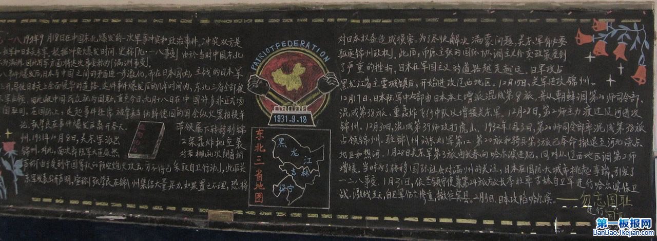 九一八事变黑板报模板精选与资料:勿忘国耻 振我中华