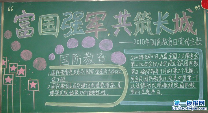 国防教育日黑板报模板与内容:富国强军,共筑长城