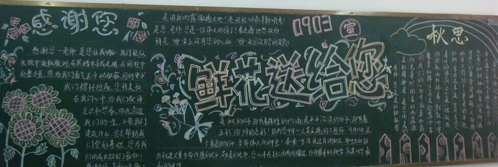 路过一片花地,才突然记得今天是9月10日教师节,她想,我要送什么礼物呢?看见花地里有野菊花,就摘了两束颜色不同的野菊花,来到老师办公室窗前,老师的桌上有日历,地球仪,老花镜……她想:老师正好不在,不如把花插在老师的笔筒里。想着想着,小女孩的右手的黄色的野菊花已经插在笔筒力了,小女孩笑着说:“老师,当你看到这束野菊花,一定会感到我对您的深深的敬意,老师您辛苦了,您为我们付出了辛群的汗水,怎能不使我们感动呢?”