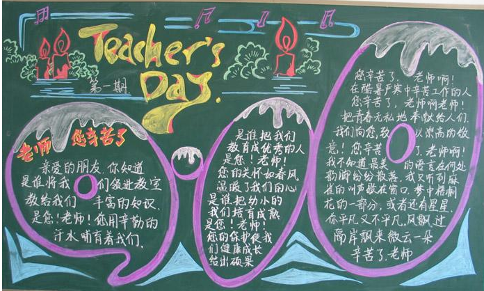 一年一度的教师节来临了,作为六年级的我们,这是最后一次在小学为老师过教师节了。我们一改以前只送贺卡、小礼物的方法,准备给老师过一个难忘个教师节。我们在教室的棚顶挂上漂亮的七彩花、墙上挂上彩色的气球、门上、黑板上还挂上了闪闪发光的彩灯。黑板上用彩笔划上了两个大红灯笼“节日快乐”,我们采来花瓣还买来彩带彩星,并为老师准备了可乐、各种水果、糖果等。