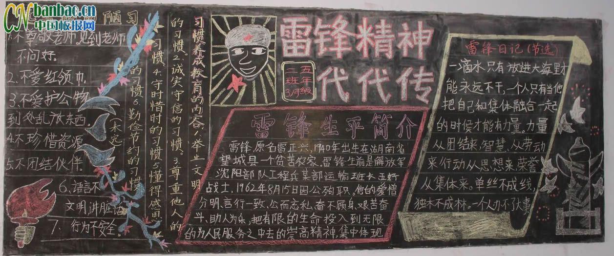 雷锋精神代代传黑板报