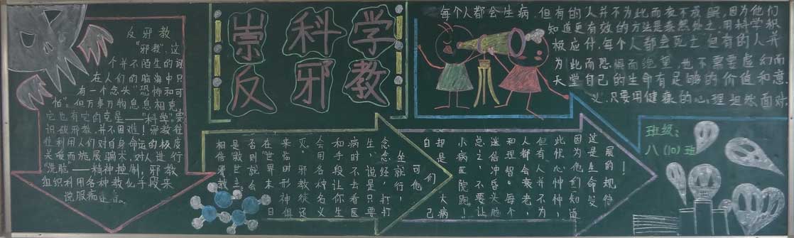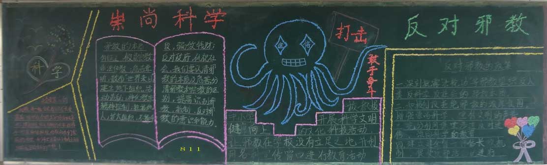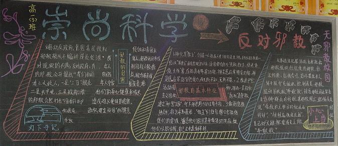 崇尚科学,反对邪教高清黑板报,法对邪教校园黑板报