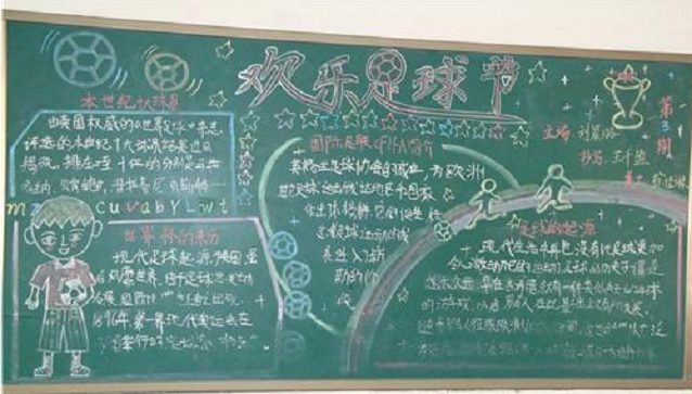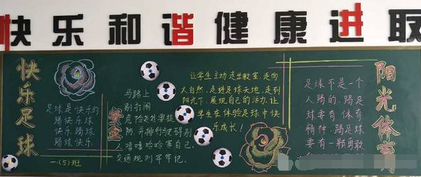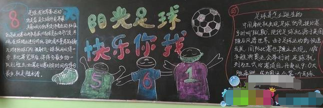 小学生足球的黑板报图片大全“阳光足球快乐你我”黑板报
