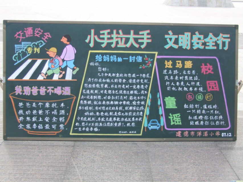 小手拉大手,文明安全行,关于文明安全的黑板报