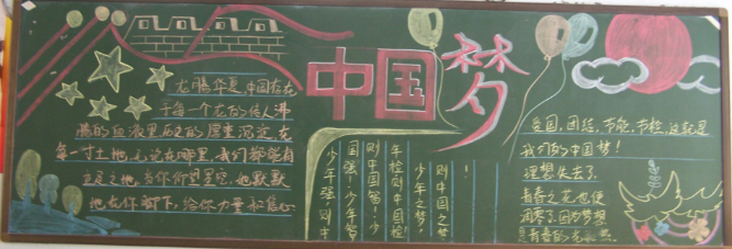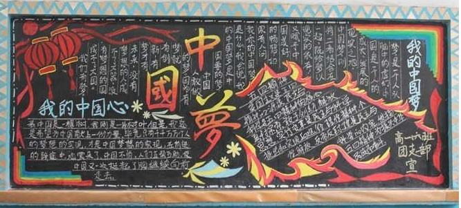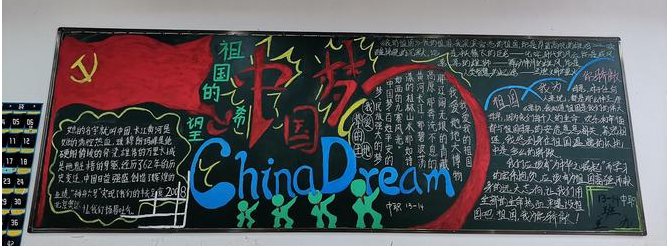 红领巾心向祖国黑板报,中国梦想展姿放彩