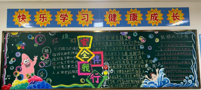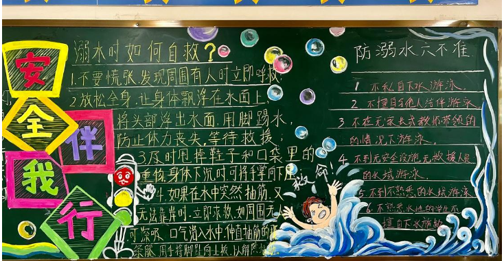 校园精选黑板报图片 夏季防溺水黑板报图片模板 安全伴我行黑板报
