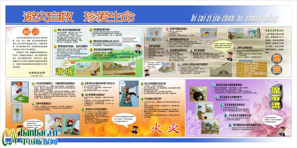 滑坡|地震|泥石流|火灾自救宣传板报-珍爱生命