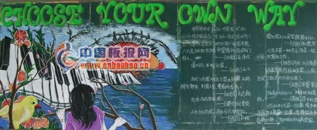 在记忆中你们总是轻松又迅速的完成每一期板报,质量也都不差。这次左边的配图一如既往的显示了你们娴熟绘画技巧,画面中的琴键和太阳、眼睛,让人感受到你们对未来的期待。不过一边图一边字的构图不算好构图哦。再有,版面一直没有清理太赶紧,希望找个时间再彻底清理一下。