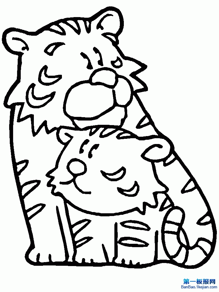 老虎怀里坐着老虎宝宝的简笔画