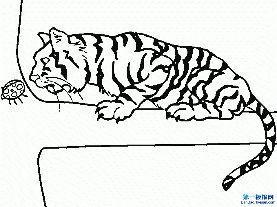 老虎盯着甲壳虫的简笔画